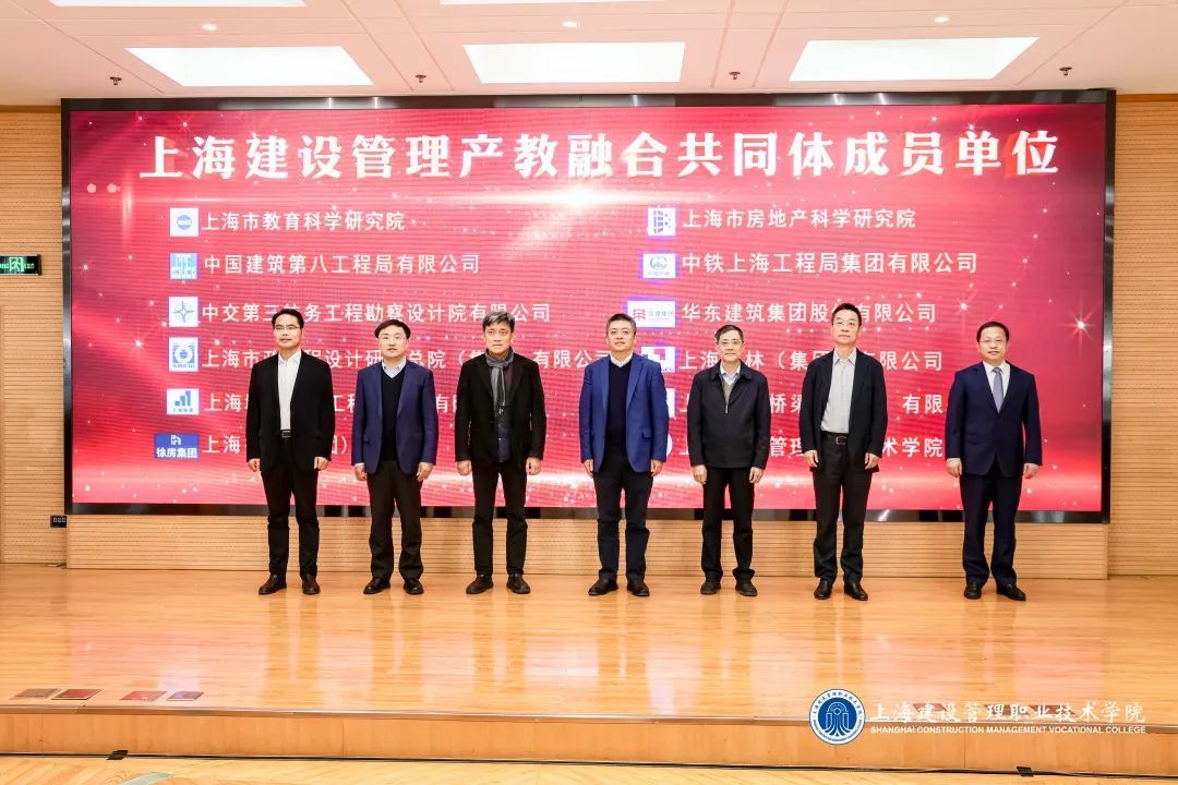 中国科学院院士常青、市水务局总工程师高昊旻、市交通委二级巡视员孙林骏、市绿化市容局二级巡视员肖龙根与共同体成员单位代表中铁上海局党委副书记、工会主席章胜华,华建集团党委副书记夏冰,市教科院院长桑标启动“上海建设管理产教融合共同体”。