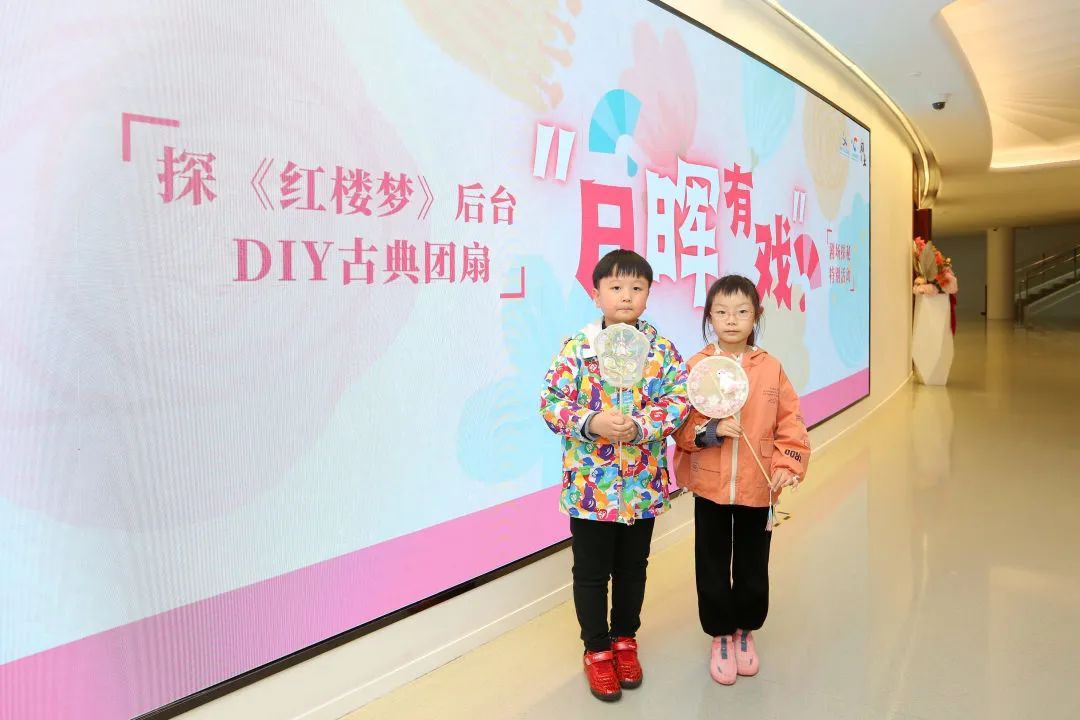 团扇完成后,老师又和小朋友们分享了一些戏曲中手持团扇的小动作,用镜头记录下一个个现代版“小花旦”“小小生”。当天晚上,家长和孩子们一同走进越剧《红楼梦》的世界,亲临现场感受戏曲艺术的独特魅力。