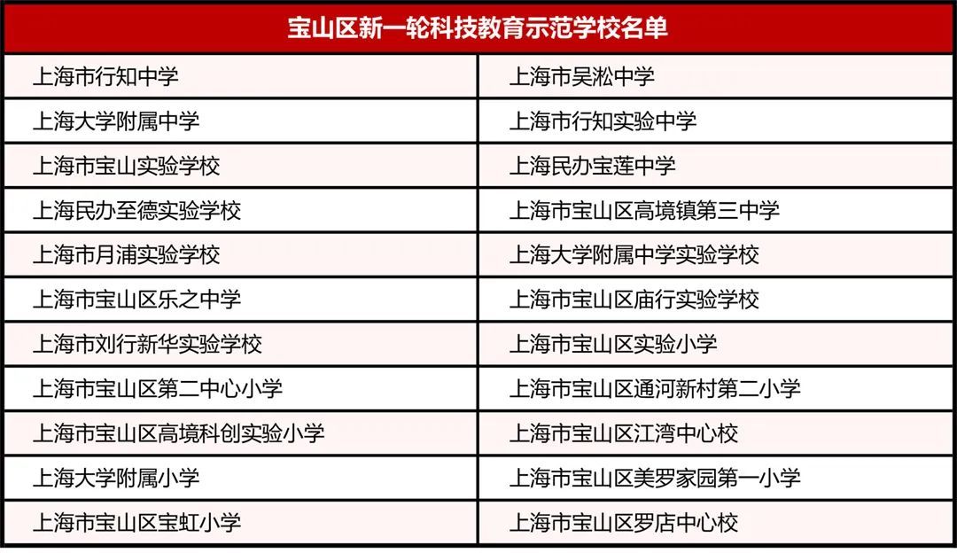 宝山区科技教育示范校名单
