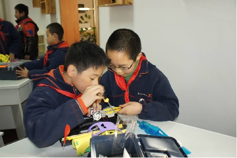 第二中心小学依托宝山区青少年活动中心联合体项目,不断做强学校的科技品牌特色。学校开设了60多项各类兴趣社团,其中科技类兴趣社团占比达到30%以上,并成立了5个科技类特长社团——无线电(定向越野)、OM、车模、立体思维、创新屋,特长社团活动保证每周2次以上。学校充分发挥科普教育基地(大拇指少年宫、顾村公园、科技馆)优势,在系列活动中形成并构建了富有学校特色的校本课程体系:木工创意、立体思维、无线电(定向越野)。这不仅为学生提供了学习与实践的平台,也满足学生多样化发展的需求,将科技渗透在学校教育教学的各个领域。