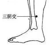 盘腿端坐,用左手拇指按压右三阴交穴,左旋按压15次,右旋按压15次,然后用右手按压左三阴交穴,手法同前。