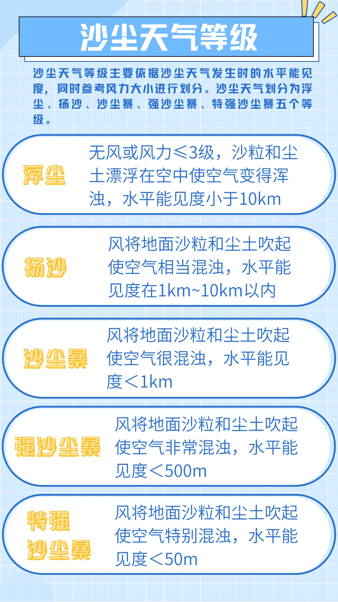 浮尘和沙尘暴有多大区别呢?来了解一下沙尘天气的等级划分↓