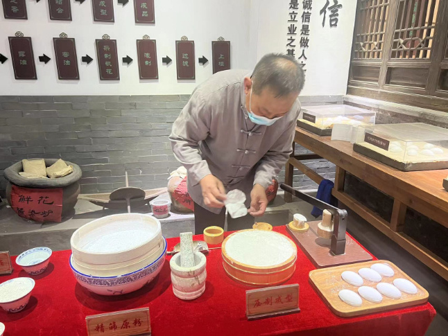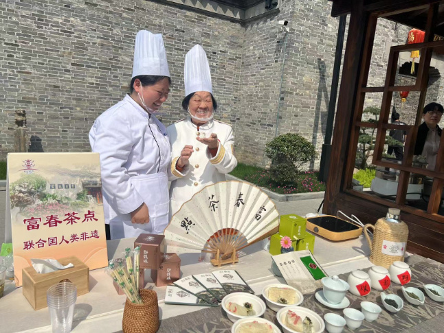 文思豆腐、狮子头、翡翠烧卖、三丁包……在中国淮扬菜博物馆,当品类众多的淮扬菜在眼前浮现,瞬间唤醒了嘉宾们的味蕾。富春茶点更是将制作间搬到了现场,“富春茶点的特点是应季应时,如春天的春笋包、夏天的干菜包、秋天的蟹黄包、冬天的雪菜包,四季不同,口味不同。”国家级非物质文化遗产传承人、今年79岁的徐永珍一边介绍富春茶点技艺特点,一边与来宾热烈交流。自从富春茶点制作技艺被列入联合国教科文组织人类非遗代表作名录,慕名前来品尝的游客络绎不绝,徐永珍深感骄傲和自豪的同时,更感肩头的压力和责任,“人们的生活水平不断改善,食客们的味蕾也变得越来越挑剔,我要将这门技艺保护好、传承好,让四面八方的游客品尝到我们最正宗的富春茶点”。