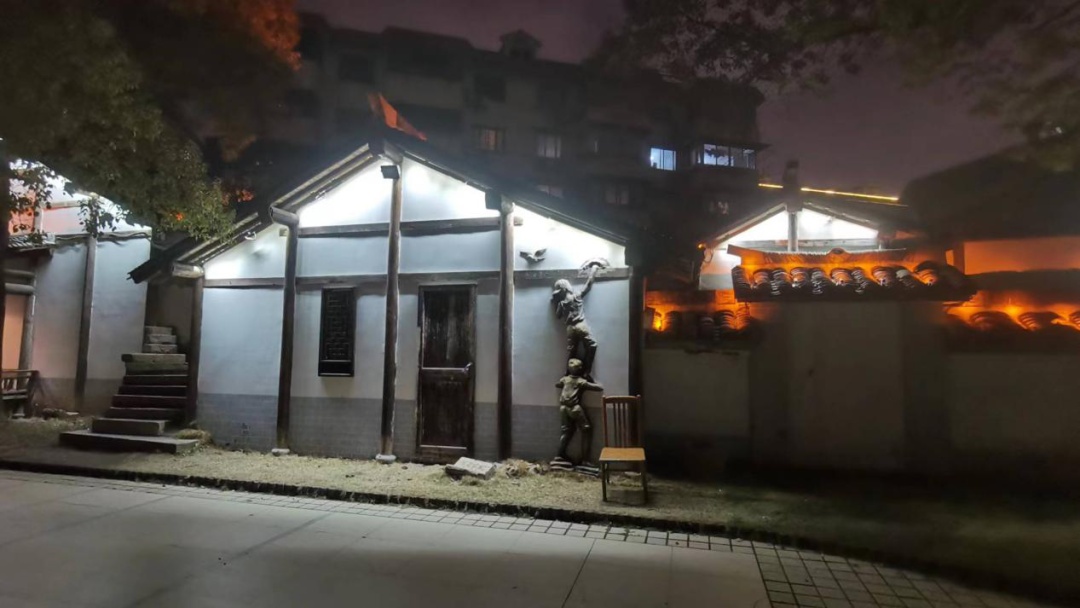 江南风格的住宅墙边,人物雕塑设计活灵活现,增加了空间的趣味性。通过灯光投射,更好地烘托出区域环境中的人文生活气息,成为了人们驻足观赏的一个景观点。