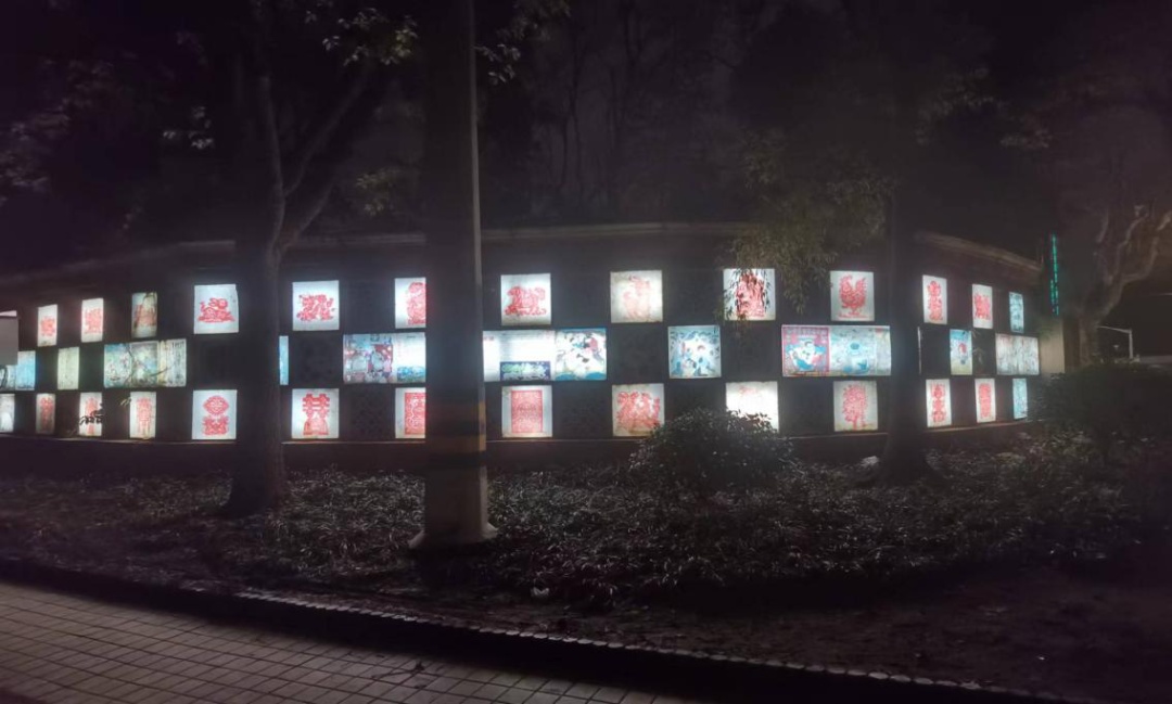 通过景观灯光的营造,使文化景观墙和回廊层次分明,人们漫步在自然惬意的夜景中,可以感受到景观墙上新泾镇的“前世今生”。