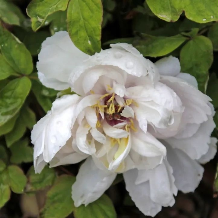 值得一提的是,现在也是荟萃园凤丹牡丹的绽放时期。这片牡丹已有80余年的花龄。其花为单瓣型,宽大平展, 大多呈玉白色,间有粉白、粉红色或少量紫红色,也因其花大叶翠、飘逸华贵、香气袭人而备受人们喜爱,可谓“ 异香开玉合,轻粉泥银盘。”