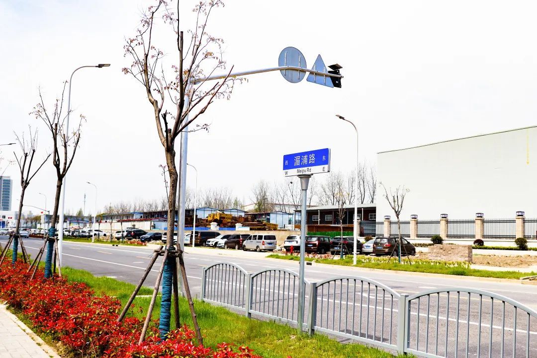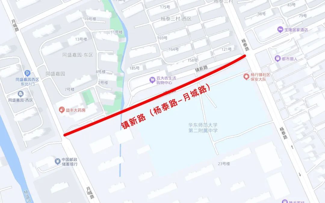 镇新路(杨泰路-月城路),紧邻新建华东师范大学第二附属中学宝山校区北侧,长度约491米。镇新路的打通将进一步完善杨行镇城市支路路网,一定程度上有效缓解周边道路的交通压力,为即将投入使用的华二宝山校区以及杨泰路西侧动迁安置基地诚和佳苑提前做好配套准备,路幅加宽和绿化增设也让城市界面焕然一新。