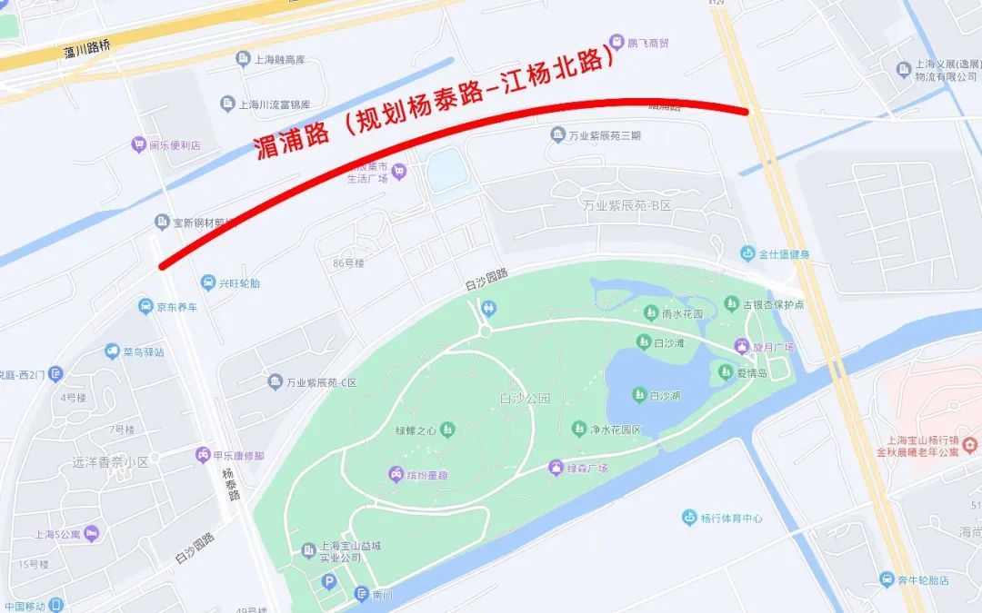 湄浦路(规划杨泰路-江杨北路),位于紫辰苑小区北侧,西起杨泰路、东至江杨北路,长度约540米。原本因规划杨泰路以及上师大附属宝山实验学校尚未建成,被中间“截断”。目前上述两项工程均已竣工,该路段同时建成通车。至此湄浦路(月城路-铁峰路)已全线贯通,极大地方便了周边居民的出行。