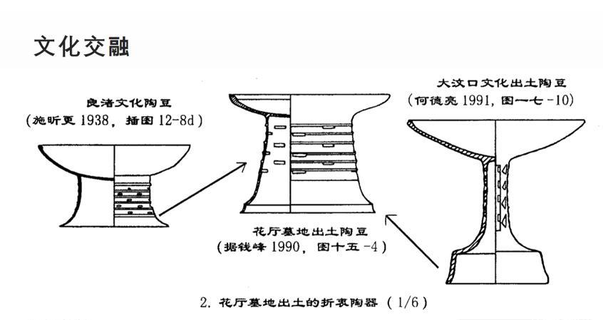 南京大学历史学院教授黄建秋分析了花厅遗址出土文物中的大汶口文化、良渚文化因素。他举例说,花厅出土陶器以大汶口文化风格为主,但发现的一些玉器,如玉琮、玉璜、玉冠状佩、玉锥形器等则是典型的良渚文化器物。一些出土文物上则兼具大汶口与良渚两种文化因素。以一件陶豆为例,下半部为大汶口风格,中部和上部是良渚文化风格,这可称为花厅墓地的“折衷陶器”。