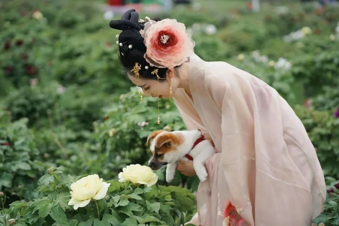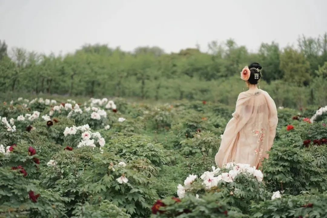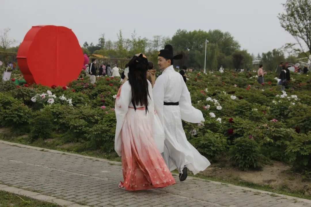 我们这次穿的是唐代的汉服,也是想和这边的牡丹相辉映。