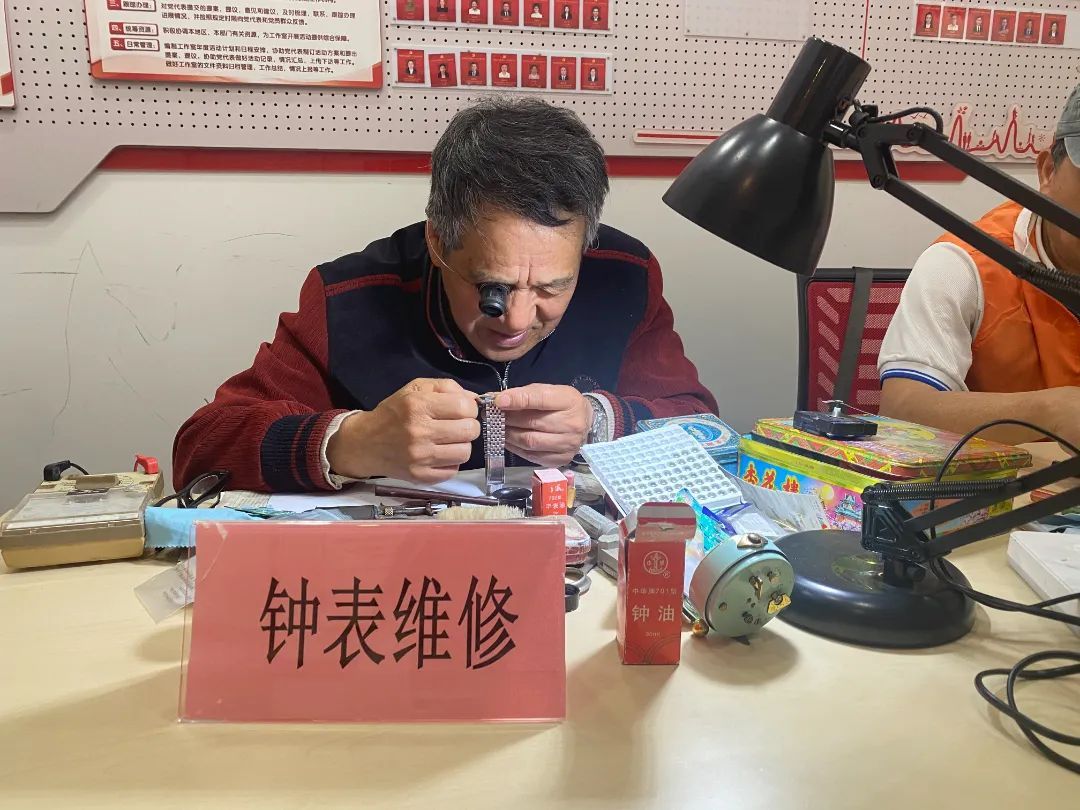 近日,在凉城新村街道党群社区服务中心一楼,江福生正在为居民义务修表。“现在修表的地方太少了,每次修表都有很多居民排队。”江福生说,我喜欢为大家修表,这是我退休生活中最充实的一部分。