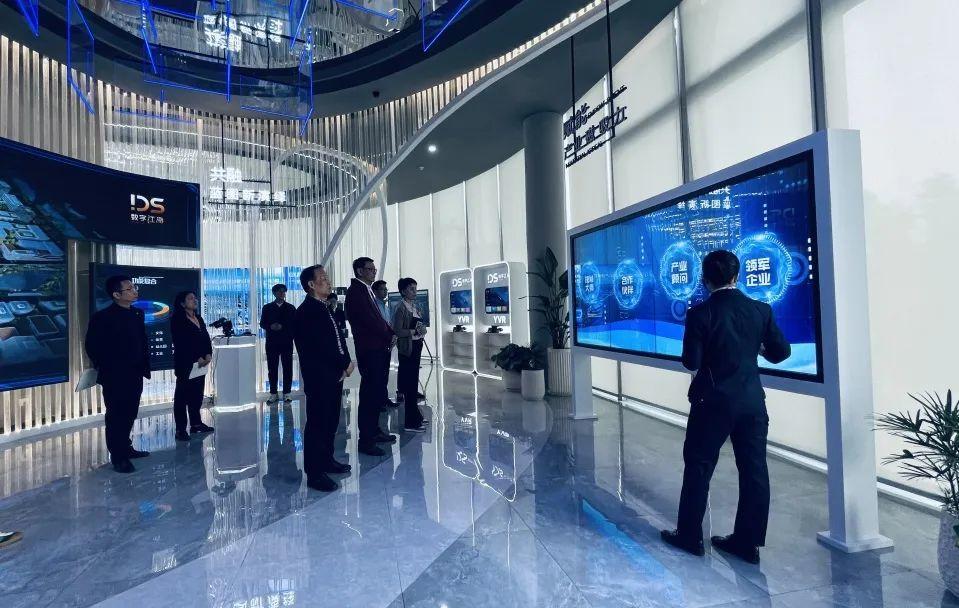 新城商务区一行听取了数字江海情况介绍,详细了解了该项目的亮点特色和开发投入,以及规划建设、产业招商工作进展,并围绕项目的开发界面、基础设施、税收专项、工业上楼、绿色低碳、数字化专项等方面开展交流。