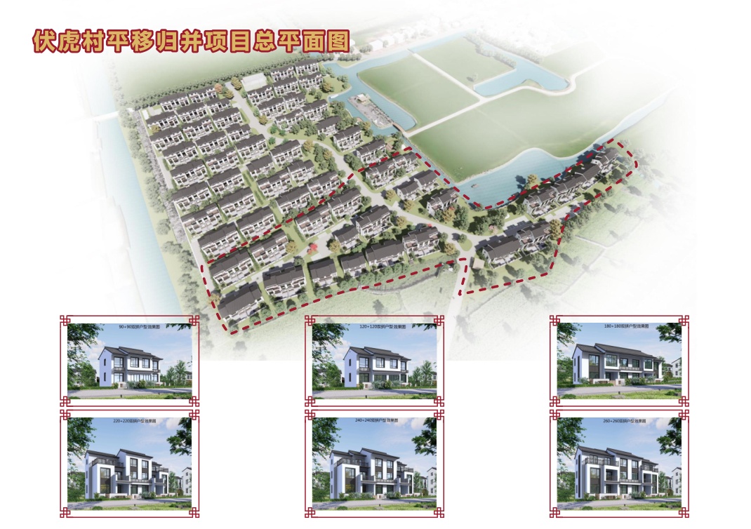 “伏虎村中的农房大部分建于上世纪80年代末到90年代,房龄基本在35年以上,已经到了新一轮房屋翻建的时间点。” 伏虎村党总支副书记刘杰介绍,为了改善乡村生活居住环境和乡村风貌,优化土地资源配置,伏虎村以平移归并、撤并上楼、原地翻建的多元化模式,推动农民集中居住。
