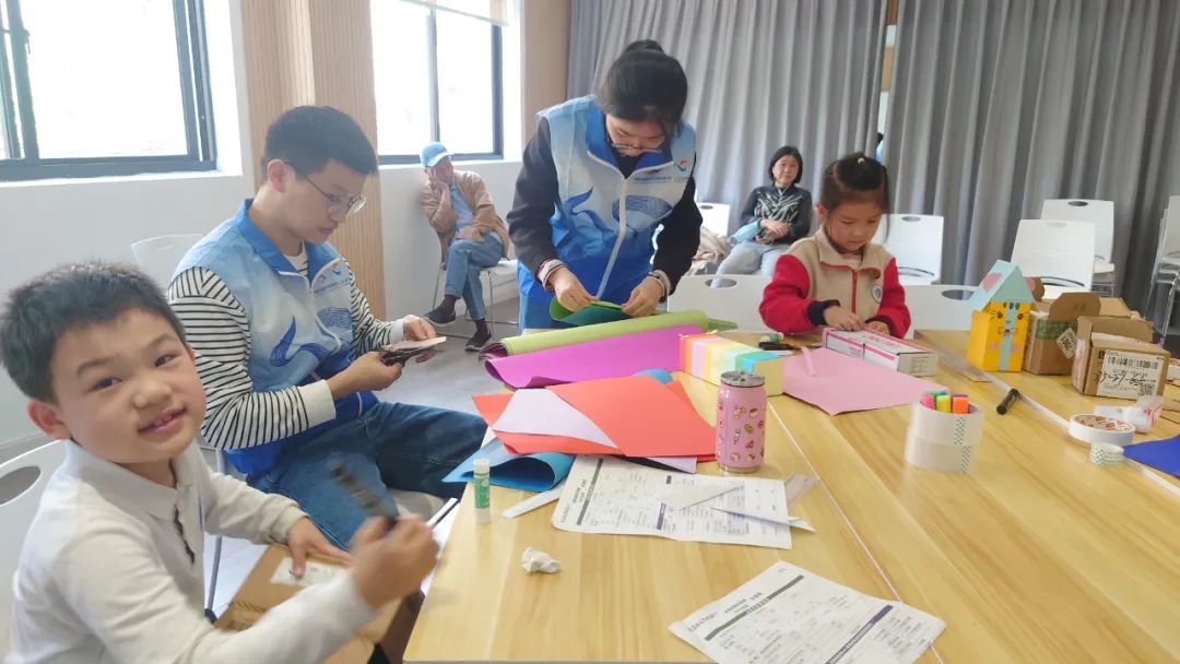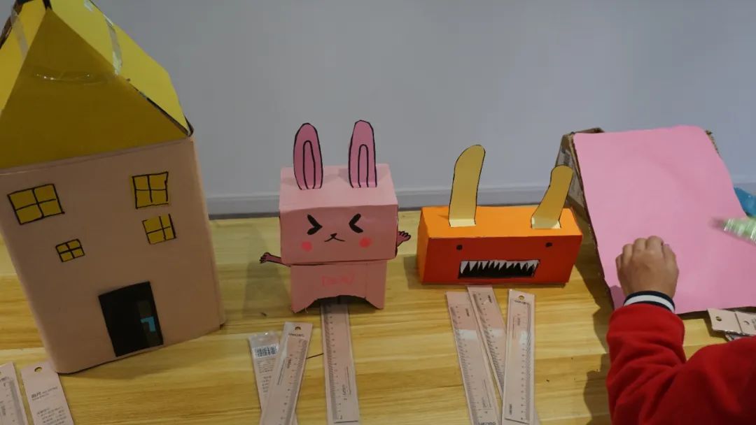 动起小剪刀,画上花图案,小朋友们尽情发挥着想象力和创造力,将纸箱改造成一只只玩具模型:粉嫩嫩、害羞脸的小兔子,方脑壳、牙尖尖的小怪兽……废旧资源摇身一变,成了可爱的手工艺品。