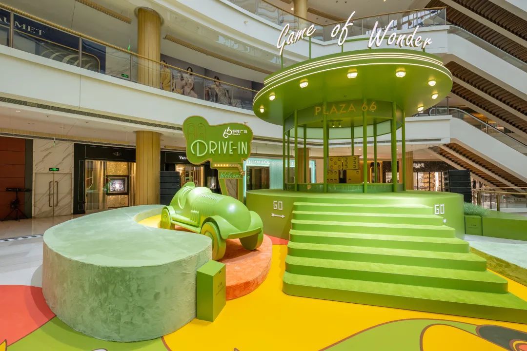 商场中庭搭设了多个游戏创意互动装置与拍照打卡点,极具新古典主义的灵感撞色风格,令人置身于色彩与活力十足的游戏乐园:
