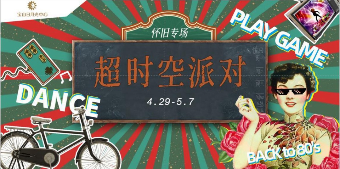 宝山日月光中心举办“55购物节-超时空派对”,推出海派风情怀旧主题专场演出、摩登年代海派复古怀旧市集、年代照相馆拍照打卡,还有全场消费满100送55元抵用券。