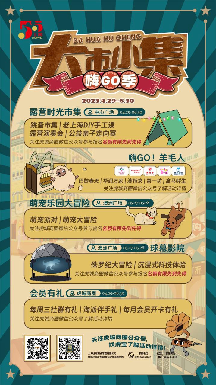 “夜间经济”版块鼓励跨界联动推出多元体验,将商业、体育、文化等多业态跨界融合,推出多元化夜间经济消费体验,以热门地标点亮我区夜间经济。2023年延续大华夜市品牌,将推出常态化主题市集、老上海风格市集,月月更换主题和业态,融入美食、露营、音乐、跳蚤市集等元素,至年底,大华夜市计划举办6场主题市集。
