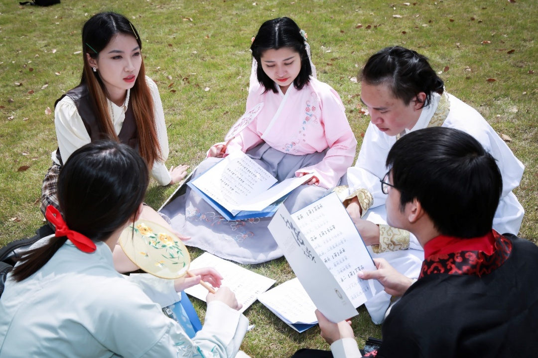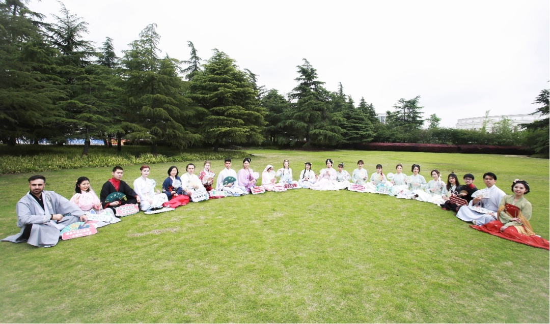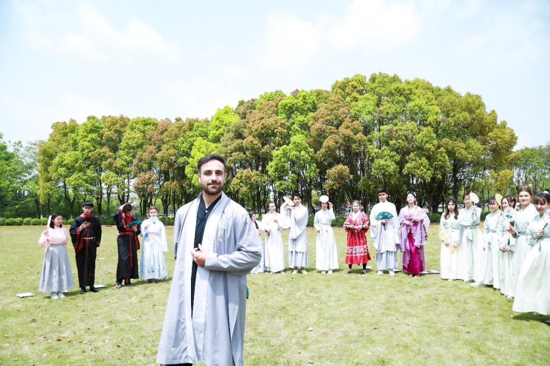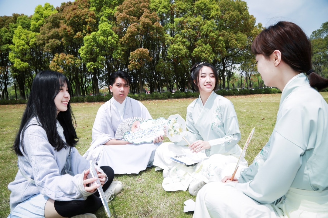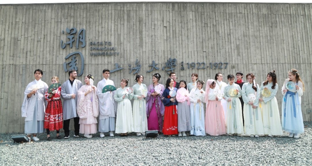 4月15日,上海大学20名国际学生跟随汉语教师和国际学生辅导员,在莺飞草长的春日里,身着传统汉服,品读国学经典,寻找古诗里的春天,共同感受中文的魅力,进行了一场充满乐趣的校园文化之旅。