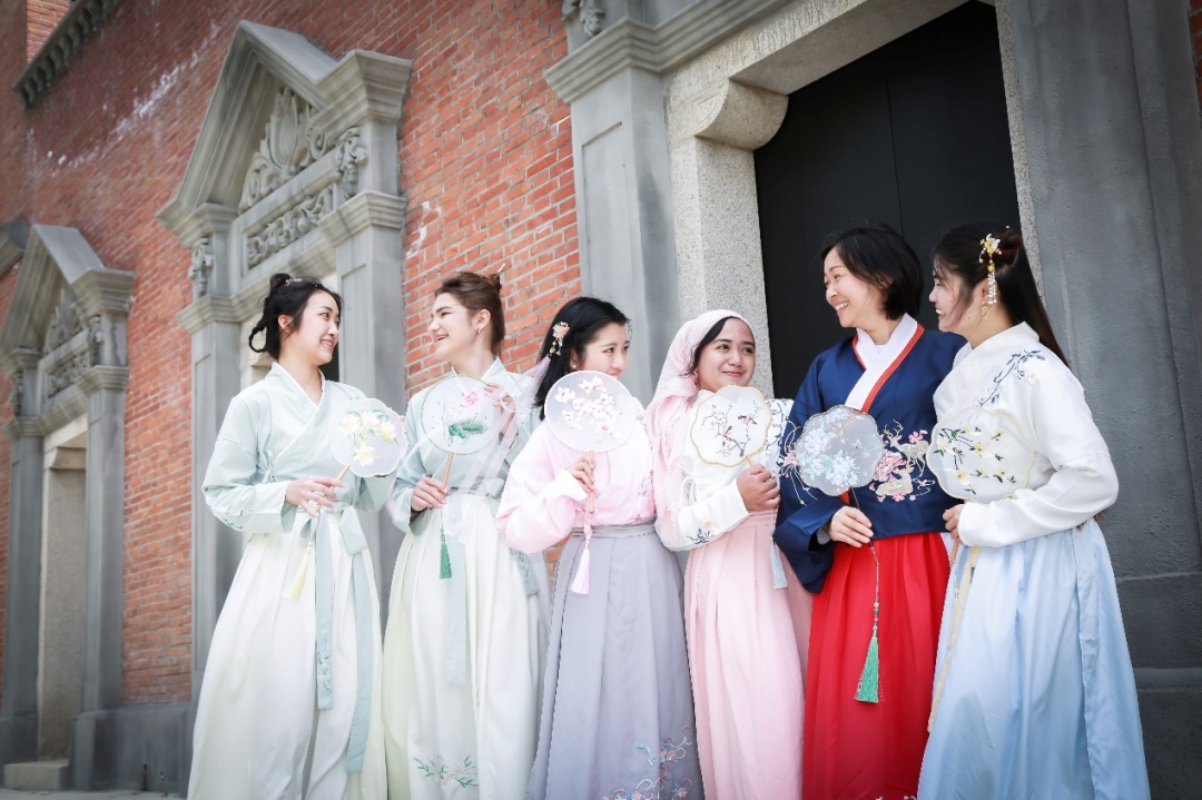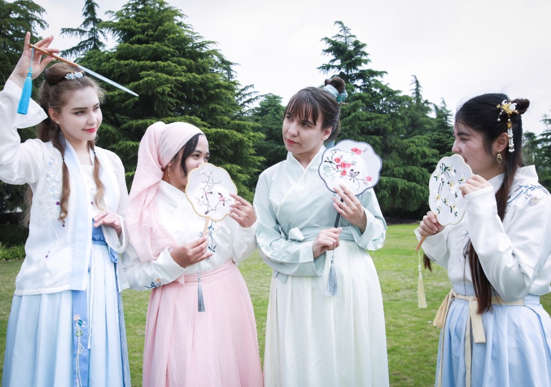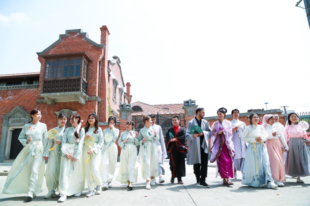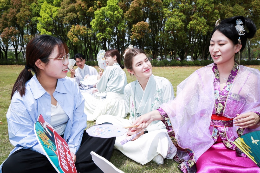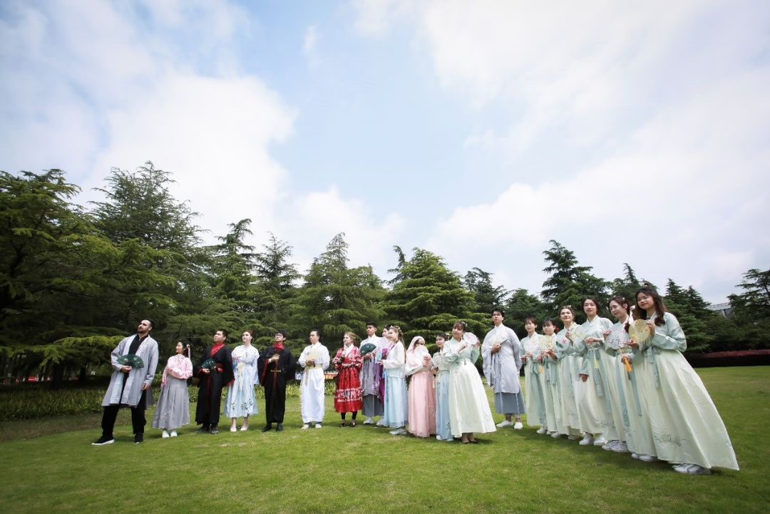 4月15日,上海大学20名国际学生跟随汉语教师和国际学生辅导员,在莺飞草长的春日里,身着传统汉服,品读国学经典,寻找古诗里的春天,共同感受中文的魅力,进行了一场充满乐趣的校园文化之旅。