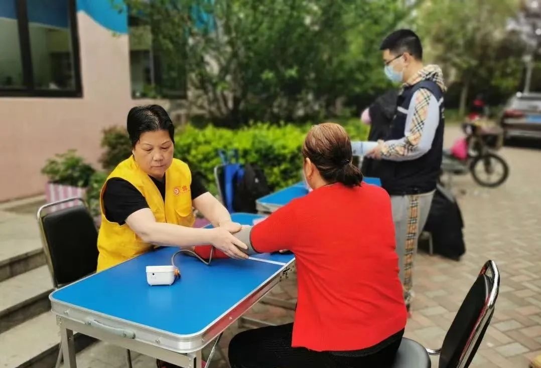 “阿姨,您血压有点高了,要少吃点高油高盐的东西,注意身体。”量血压的志愿者忙个不停,耐心细致地叮嘱每一位老人,让老人们及时了解自身的身体状况,提高他们的健康保健意识。