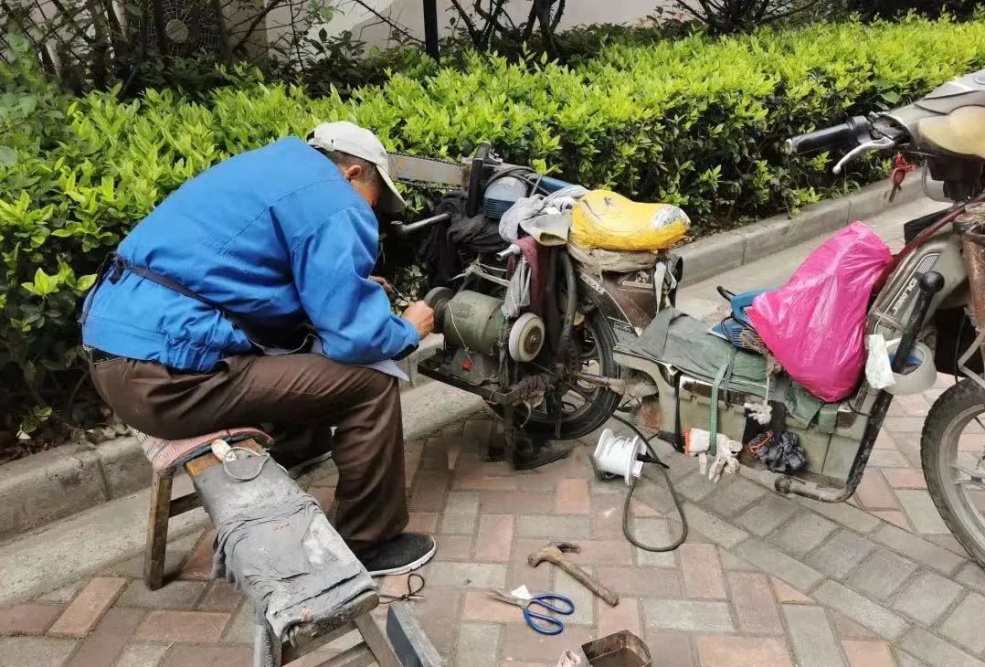 磨刀摊位前居民络绎不绝,师傅非常专业地用磨刀器仔细打磨剪刀和菜刀,不一会儿就把刀打磨得锃亮。居民们纷纷表示:“现在外面很少能见到磨刀师傅了,社区提供的服务实在太方便了。”