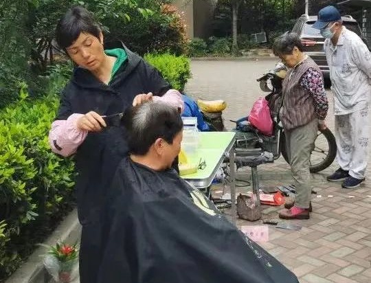 在理发服务区内,居民们有序排队,理发志愿者们一手拿梳子、一手拿剪刀,动作十分熟练,不一会儿就为居民理出了满意的发型。大家看到自己清爽的发型,都露出了满意的笑容。