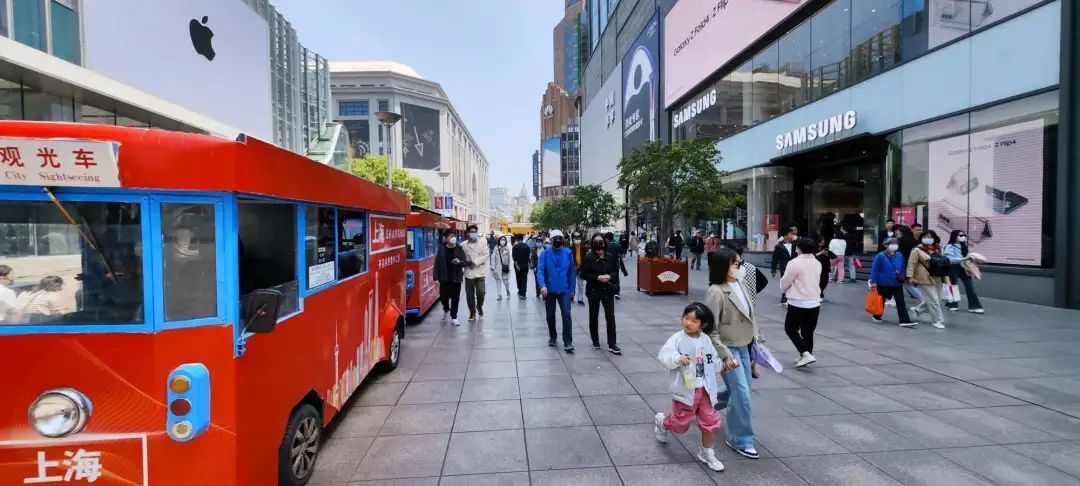 今天白天晴到多云,阳光不时出来露脸,又是晴朗的一天,市民出行的兴致高涨,南京路步行街上人气十足,来来往往的铛铛车载满了观光的乘客。午间时分,太阳暖暖地照在身上,许多市民都忍不住脱下外套,短打上阵,不少市民都表示,今天有太阳,也有风,体感不冷不热,十分舒适。