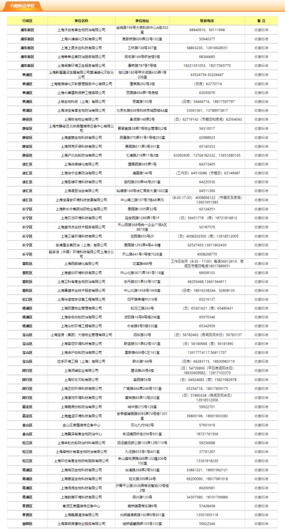 查找“上海住宅物业网”(https://962121.fgj.sh.gov.cn),点击“白蚁防治”栏目,查询白蚁防治企业的联系电话、收费标准等。