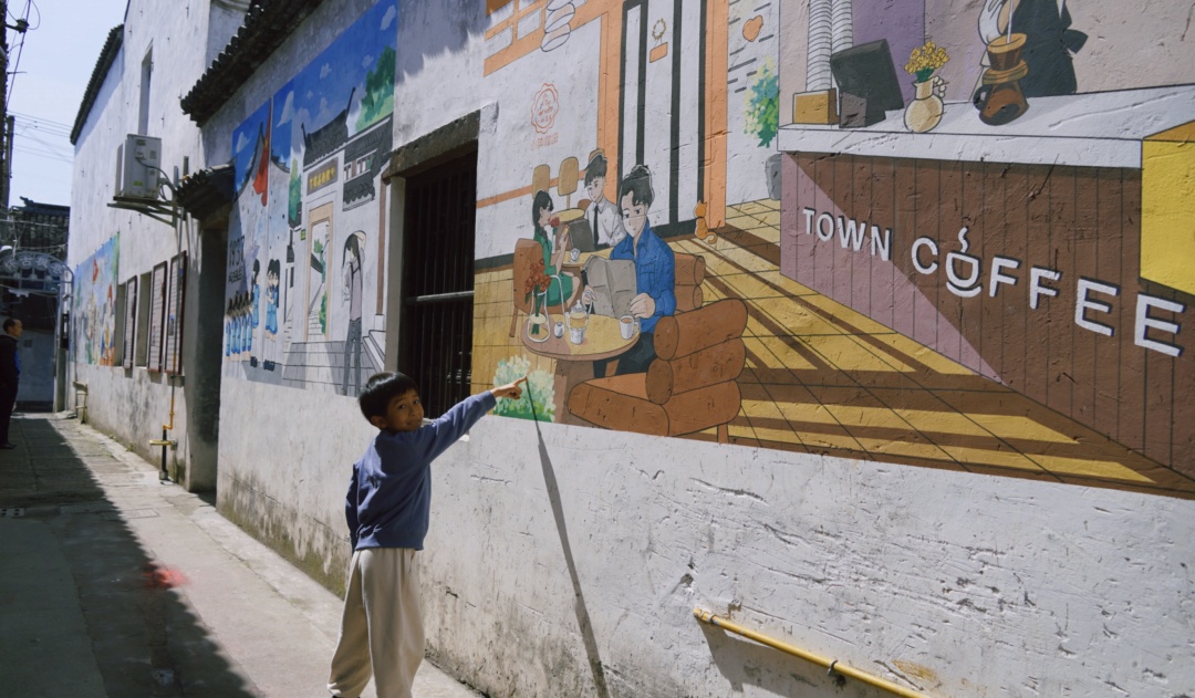 “我们想让来到枫泾的游客在享受美食和美景之余,了解枫泾的历史,带走枫泾故事。”弄堂墙绘工程的发起人、一杯乐小镇咖啡馆的主人義先生和慧慧说道。