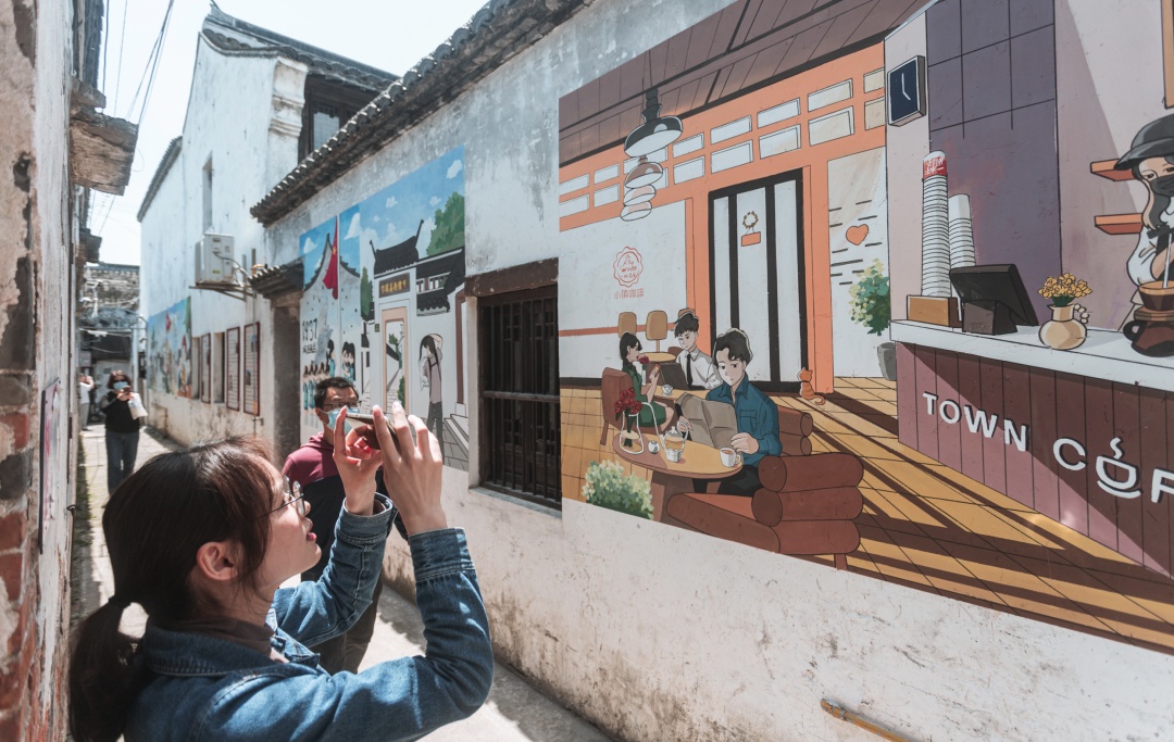 “一边是斑驳的旧青砖墙,一边是时尚跃动的墙绘。我们希望来到这里的客人可以了解枫泾的历史文化,让枫泾的故事随着打卡照片传播得更远。”慧慧说。