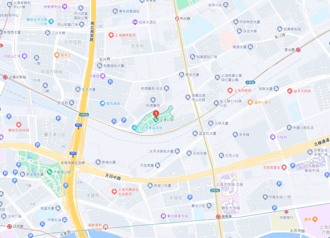 交通公园周边没有公交车站,但地处多座地铁站之间:3、4号线上海火车站站、宝山路站;8号线中兴路站;8、12号线曲阜路站。各站步行至交通公园的距离均为1公里左右。公园周边部分道路可停车,市民可自行安排前往。