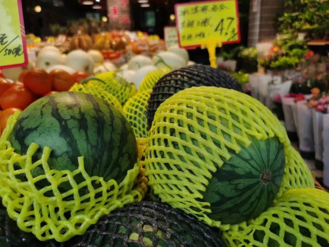 除此之外,菜场还有金贵妃、麒麟等品种的西瓜品种,宛如小皮球的“掌中宝”西瓜更受市民们的偏爱,销量更加走俏一些。