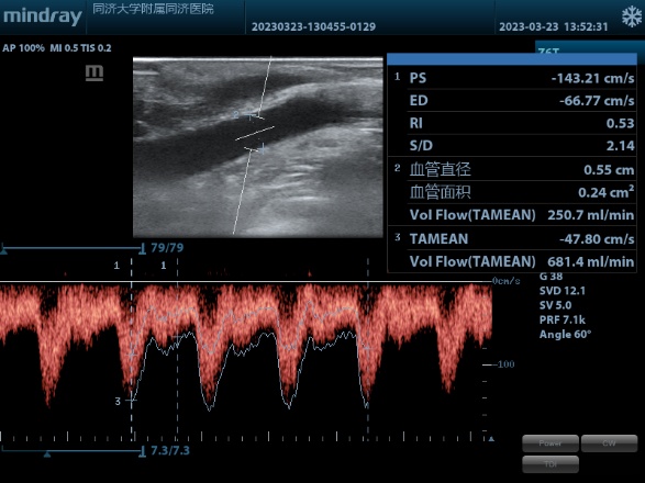 3年前,76岁的武先生因为肾功能衰竭开始使用自体动静脉内瘘作为血管通路,进行血液透析治疗。近1年来,因内瘘狭窄导致血流量不足无法血液透析,曾行两次介入下内瘘球囊扩张术,但最近一次仅仅维持了3个月就再次复发。最近武先生再次出现内瘘血流量下降,无法维持正常透析,于是他找到同济大学附属同济医院肾脏内科血管通路组进行评估,超声检查内瘘血管内可见头静脉长段狭窄伴内膜增生明显,狭窄段血管管腔内径不足2mm。