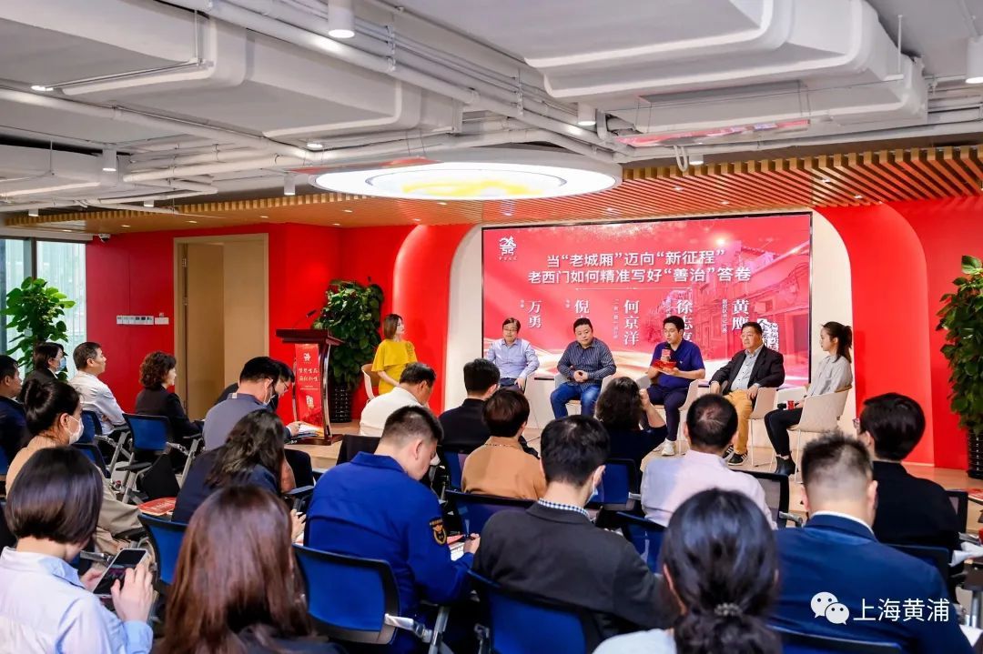 为精准“把脉”基层治理现代化进程中的进展与成效、问题与困惑、机遇与挑战,本场活动特别设立了“群英盈门 集智厢谈”微论坛。上海社会科学院研究员万勇,新闻晨报主任编辑倪杰,见山建筑规划设计董事、合伙人何京洋,龙门邨居民区党总支书记黄鹰、大兴居民区“第二微网格长”徐志喜共同以《当“老城厢”迈向“新征程”,老西门如何精准写好“善治”答卷》为题,展开开放式讨论。