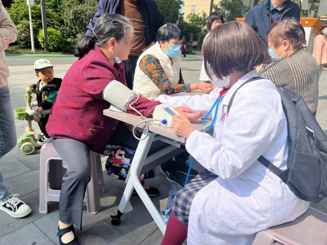 量血压、医疗咨询最受居民欢迎。“王阿姨,上压154,下压90,上压有点偏高,要注意休息!”医生耐心为前来量血压的老人说明测量结果。