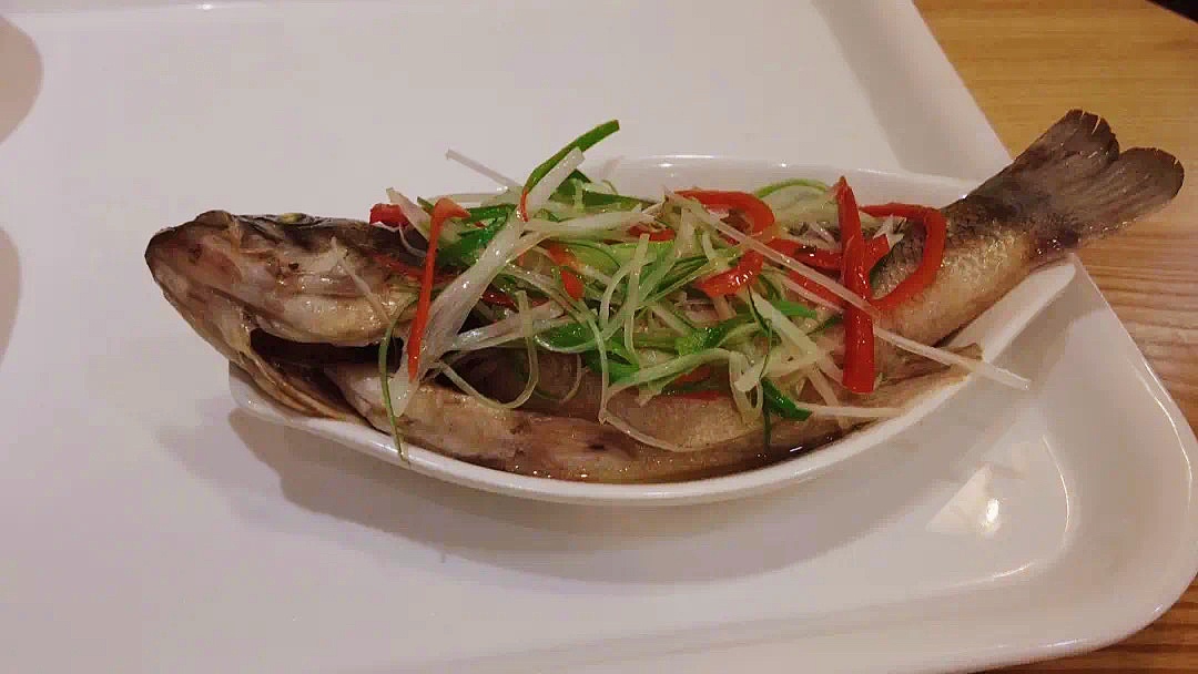 食堂的人气菜当属清蒸鲈鱼了,用料十足,整整一条鲈鱼。蒸好后,放上葱丝、彩椒丝,再淋上热油,色香味俱全。