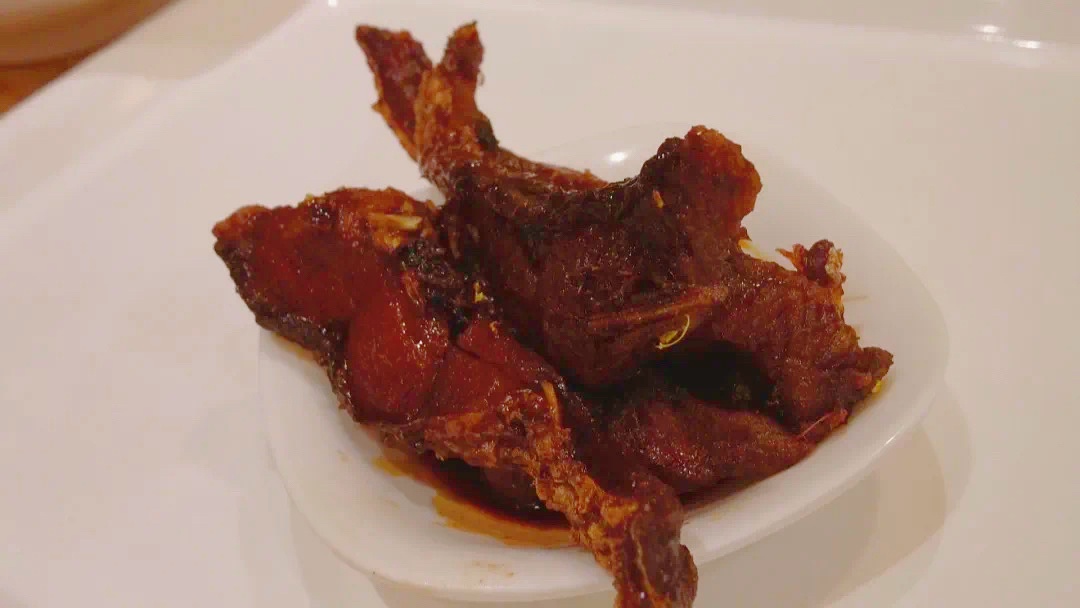 对于喜欢吃本帮菜的人来说,这里还有一道菜是不可缺少的,那就是熏鱼,油炸后,浸上灵魂酱料,酥脆香甜。