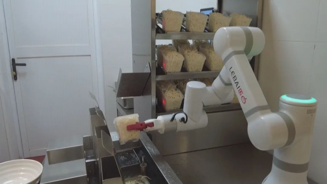 食堂里最吸引人的应该就是面档窗口的机器人大厨了,只要把碗放在机器人大厨面前,它就会自动下面、捞面,动作流畅,火候把握得也非常准确。