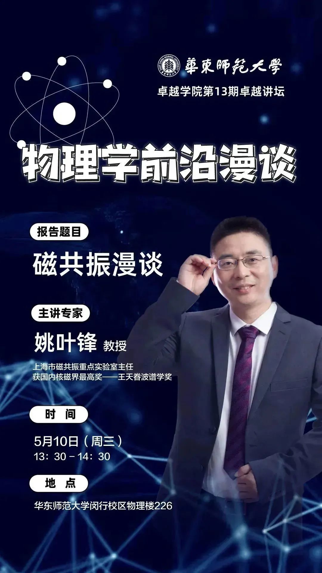专家简介:姚叶锋,华东师范大学物理与电子科学学院,教授,博士生导师,现任上海市磁共振重点实验室主任。主要致力于核磁共振新方法与新技术研发和应用。在Matter.,Nat. Commun.,PNAS, JACS,Angew. Chem. Int. Ed.,Adv. Sci.等期刊上发表SCI文章110余篇,影响因子5以上的文章60余篇。参编英文专著3部。多次受邀在著名国际学术大会(如,Pacifichem,美国化学会年会,IUPAC全球高分子大会-Macro2018等)上做特邀报告。担任Magnetic Resonance in Chemistry等多个学术期刊的学术编辑或编委。获国内核磁界最高奖——王天眷波谱学奖。
