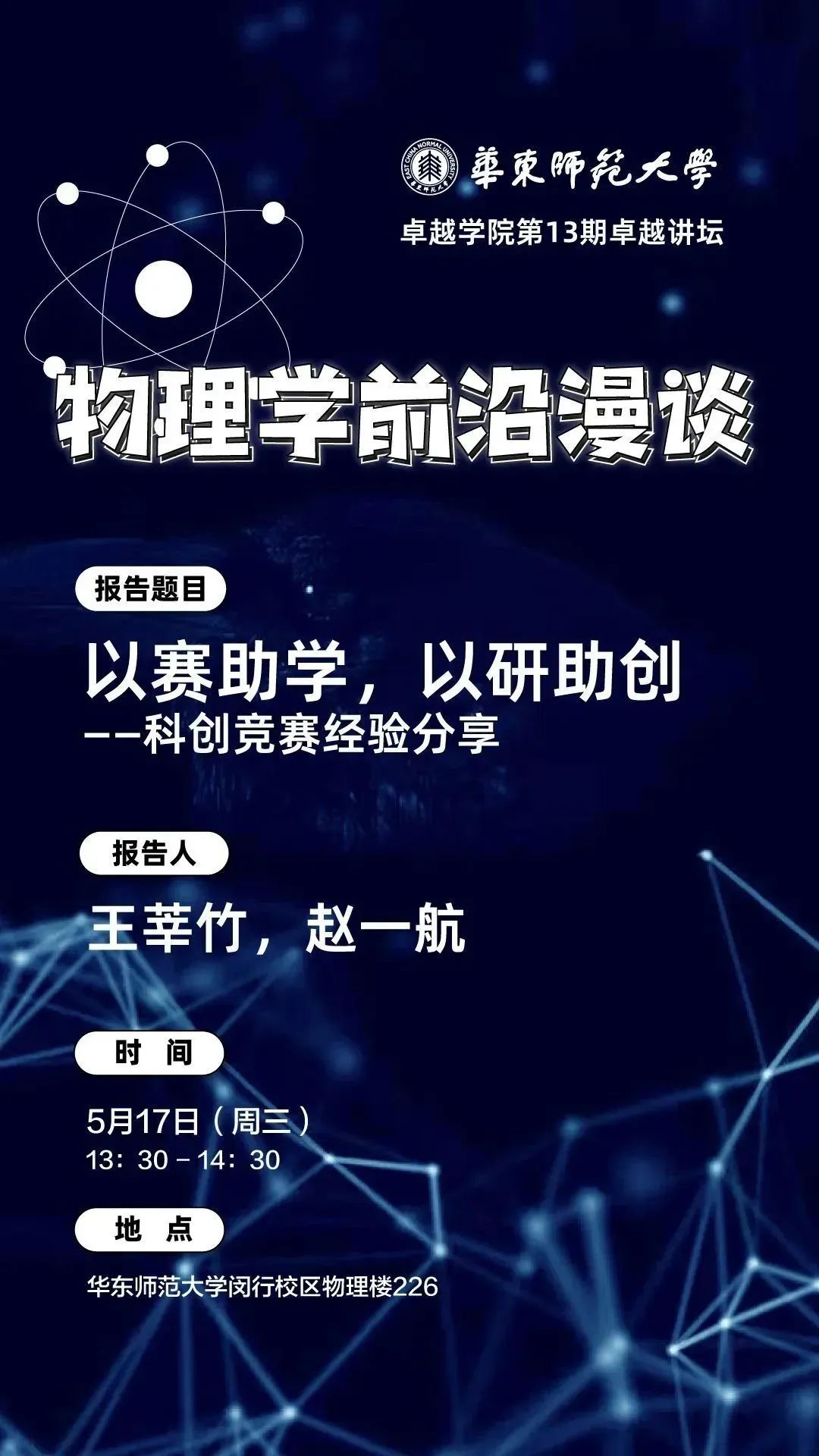 报告摘要:从两位拔尖班同学的亲身经历出发,分享科创和竞赛经历对本科生能力提升和生涯发展的作用。