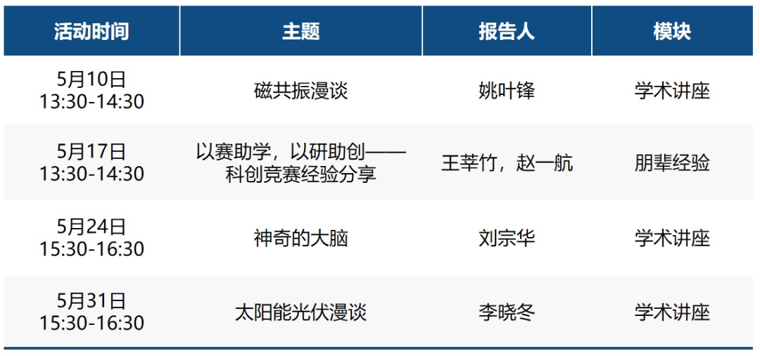 报告摘要:你眼中的磁共振是什么?是医院中诊断的大型医疗设备?是化学四大光谱之一?这两种大型设备有什么相同点?除了能了解物质机构,核磁共振还能有哪些用途?本次讲座将带领同学了解核磁共振的物理原理,更新你对磁共振成像和波谱的认识,并带你走进学术前沿,探索磁共振研究的新领域。