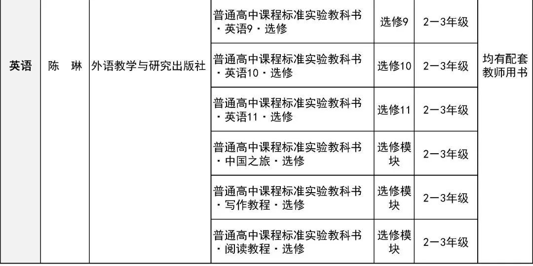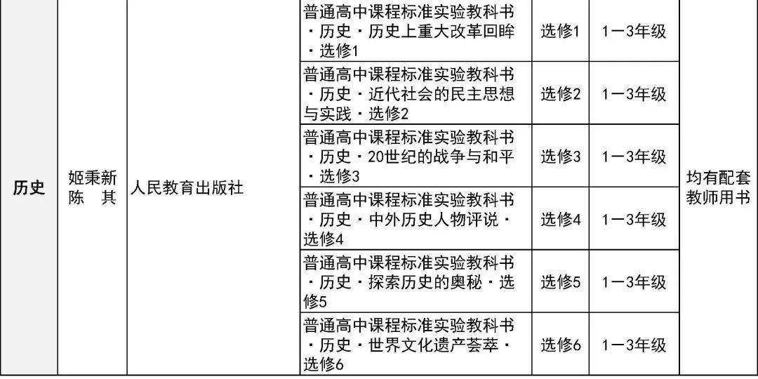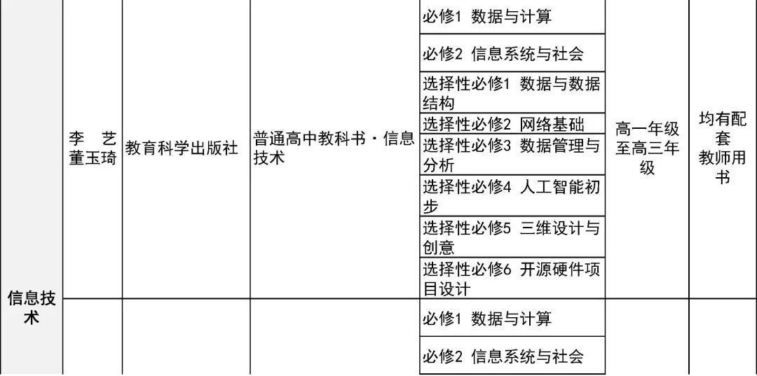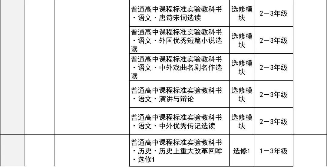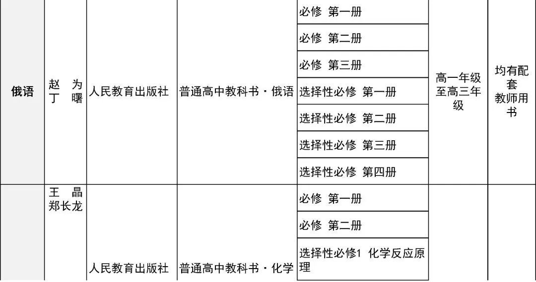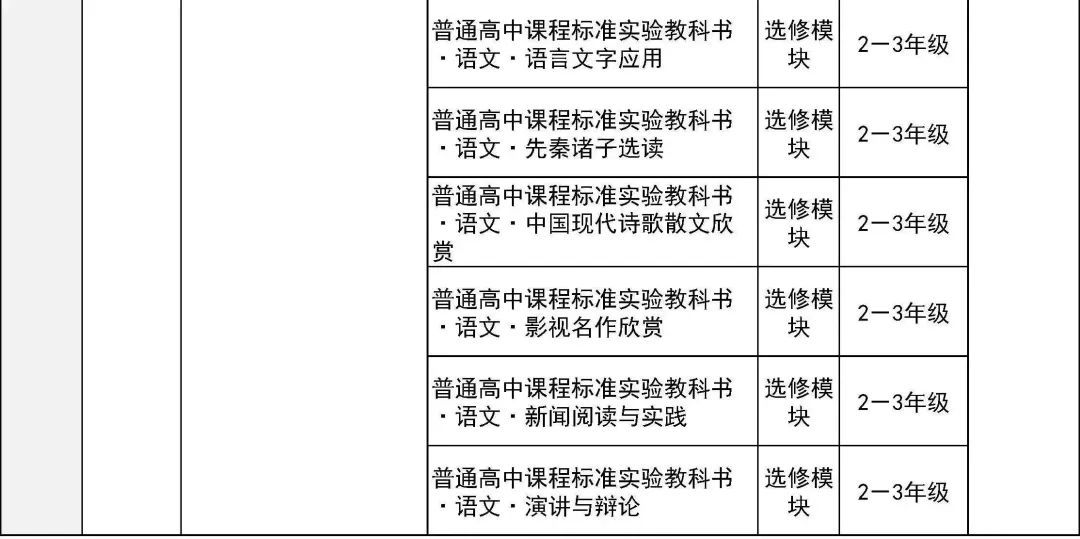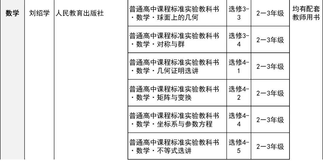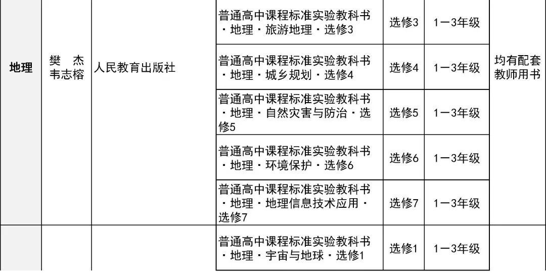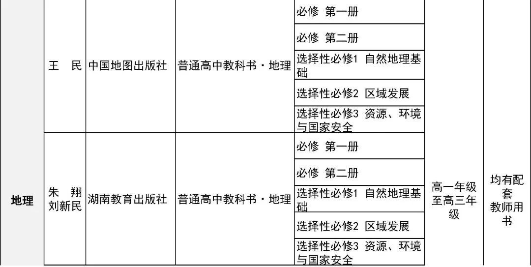 2、使用新教材的普通高中,各学科必修、选择性必修课程使用《2023年普通高中国家课程教学用书目录(根据2017年版课程标准修订)》中的教材。选修课程属于校本课程,由各省份按照《中小学教材管理办法》有关规定以及普通高中课程方案、课程标准要求确定教学材料的使用。