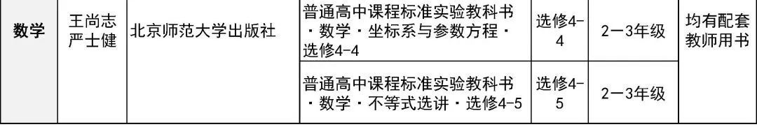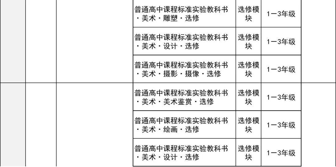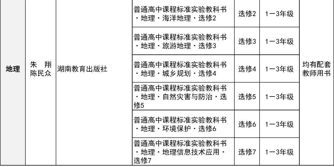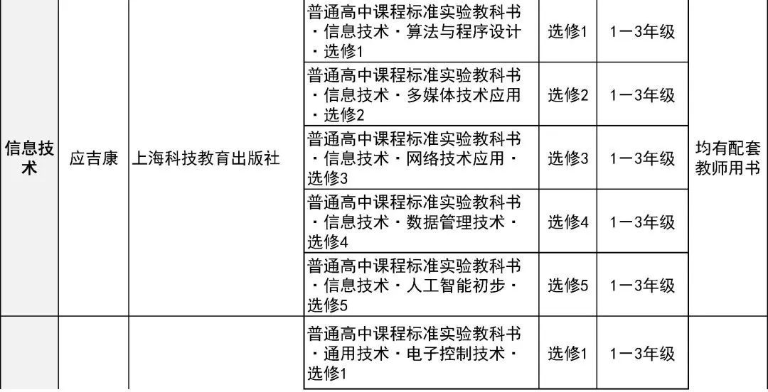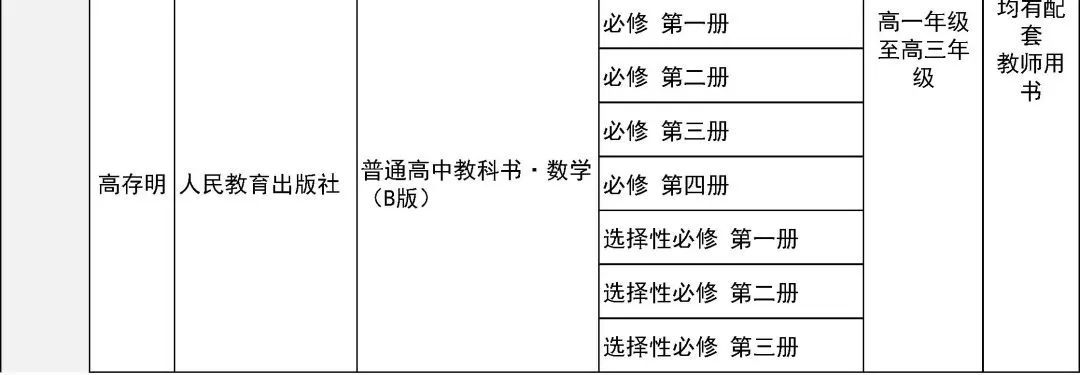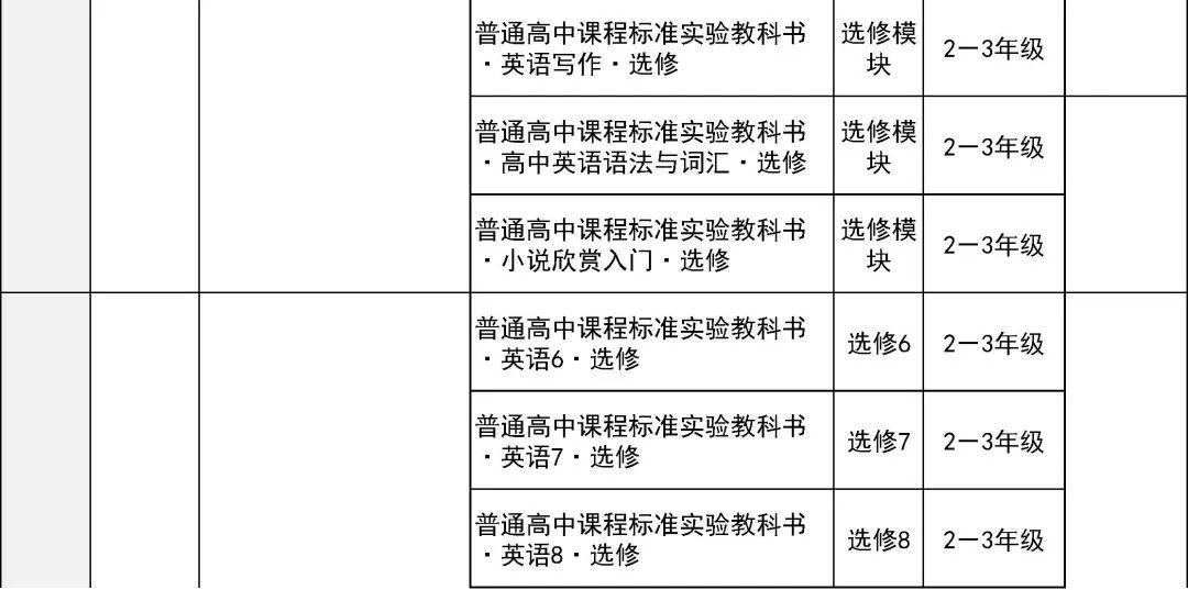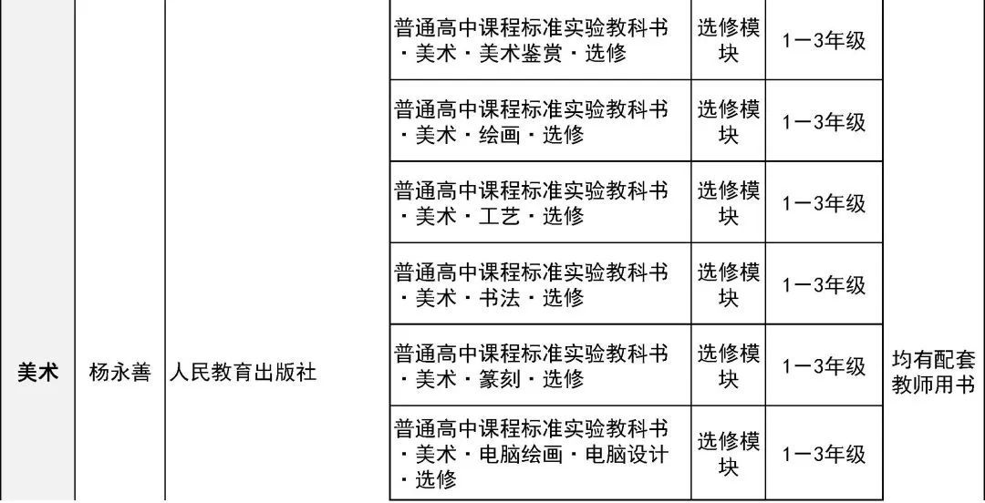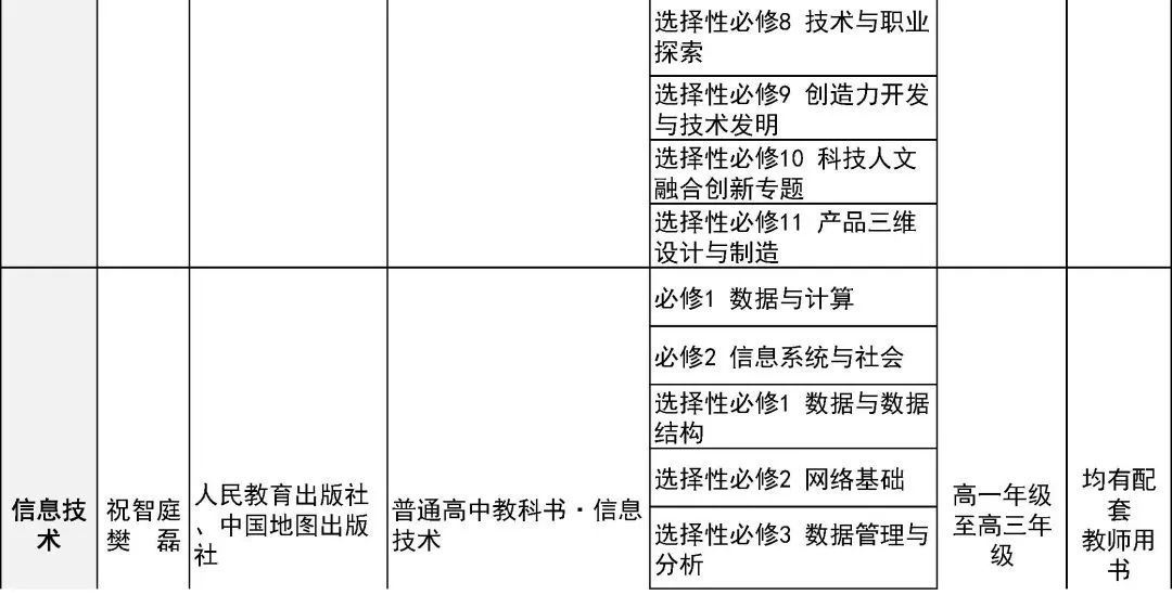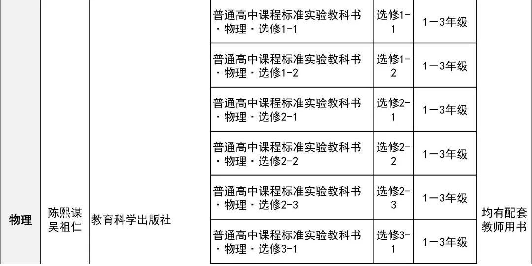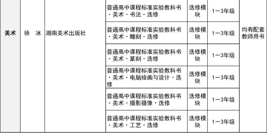 2、使用新教材的普通高中,各学科必修、选择性必修课程使用《2023年普通高中国家课程教学用书目录(根据2017年版课程标准修订)》中的教材。选修课程属于校本课程,由各省份按照《中小学教材管理办法》有关规定以及普通高中课程方案、课程标准要求确定教学材料的使用。