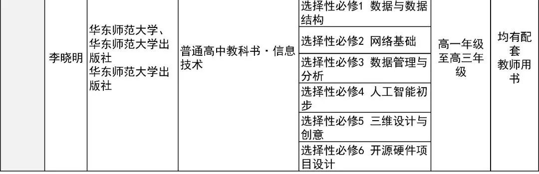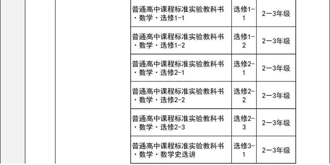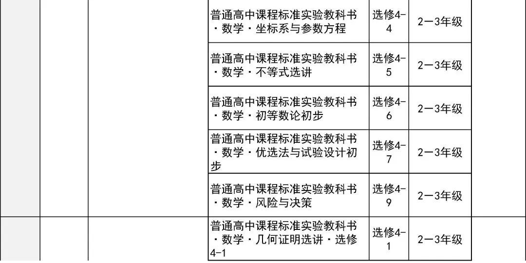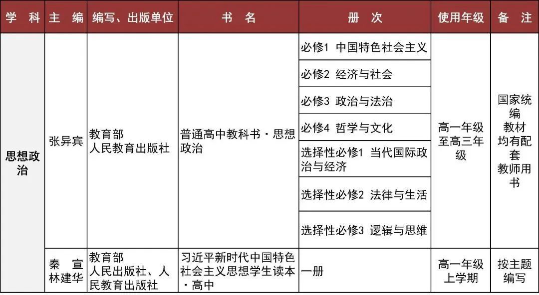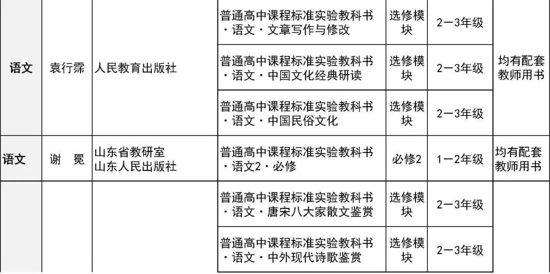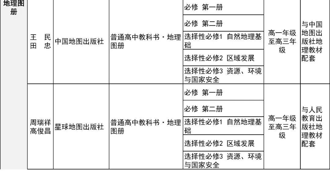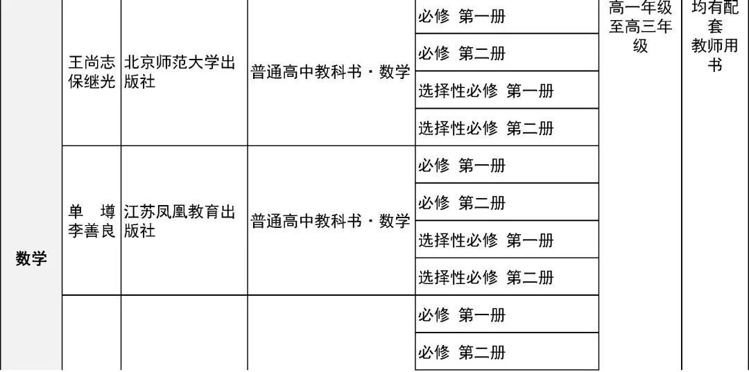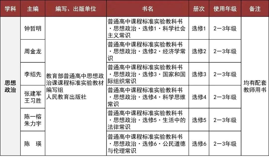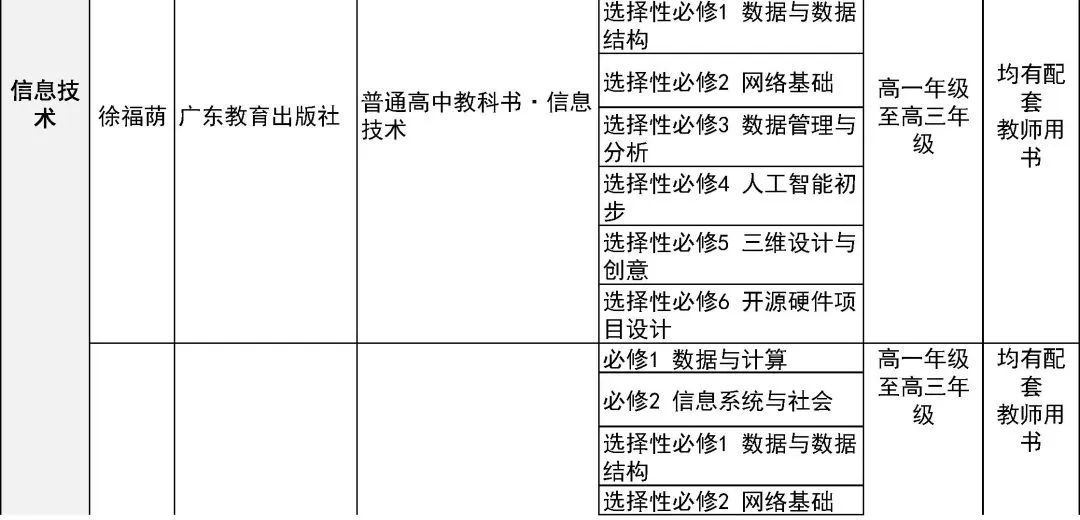 2、使用新教材的普通高中,各学科必修、选择性必修课程使用《2023年普通高中国家课程教学用书目录(根据2017年版课程标准修订)》中的教材。选修课程属于校本课程,由各省份按照《中小学教材管理办法》有关规定以及普通高中课程方案、课程标准要求确定教学材料的使用。