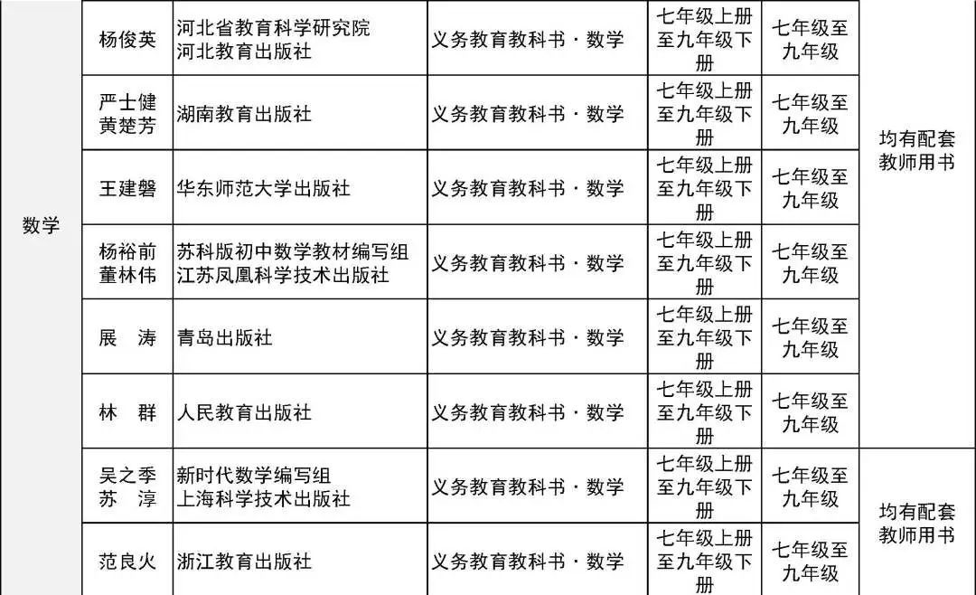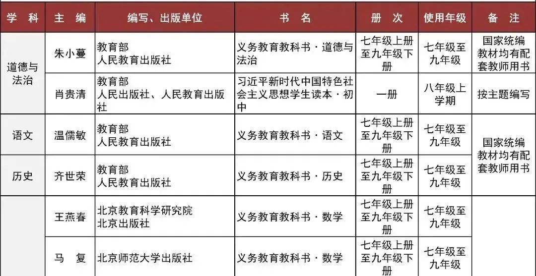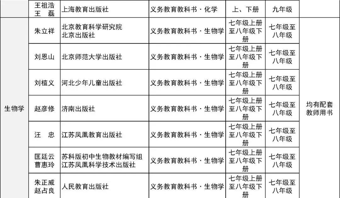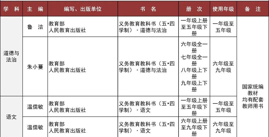 1、义务教育国家课程各学科使用《2023年义务教育国家课程教学用书目录》中的教材。