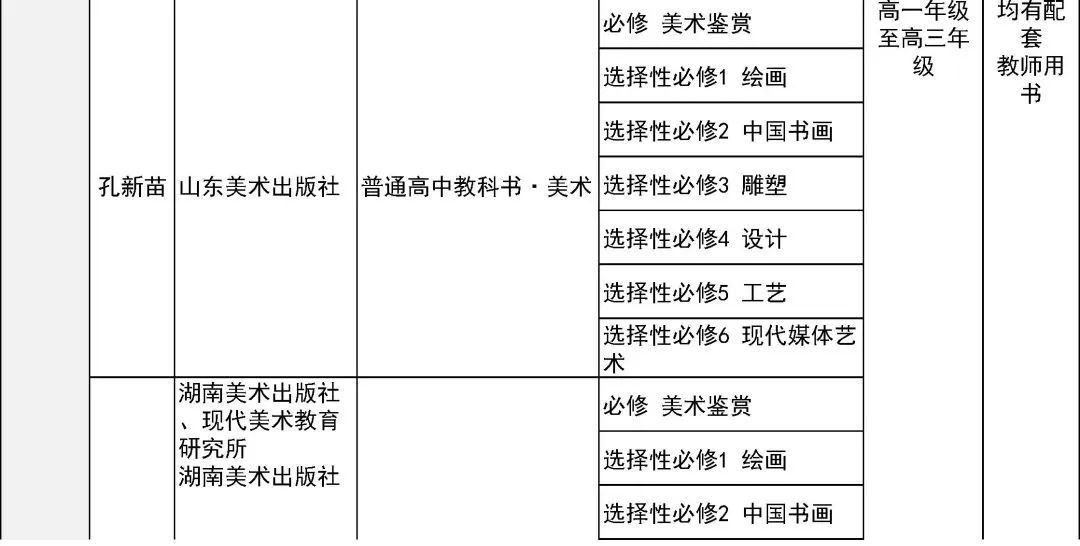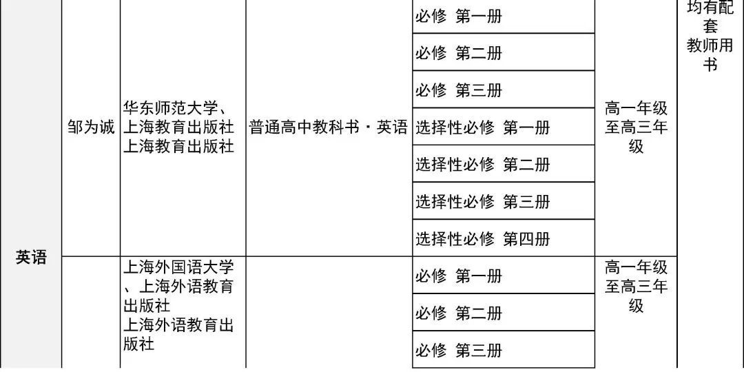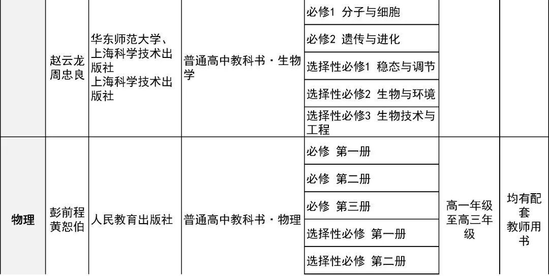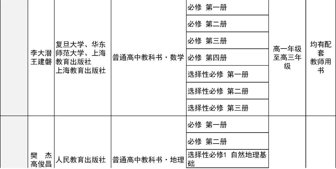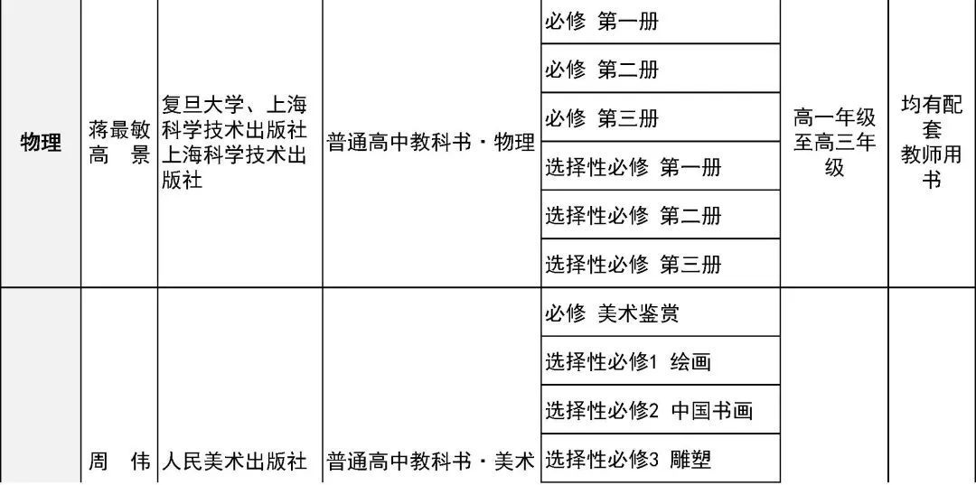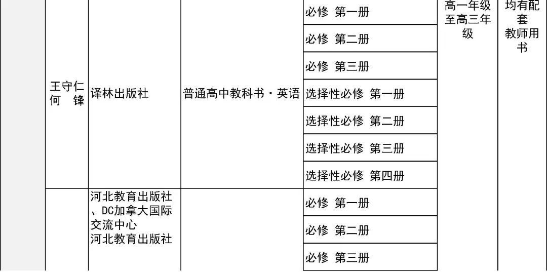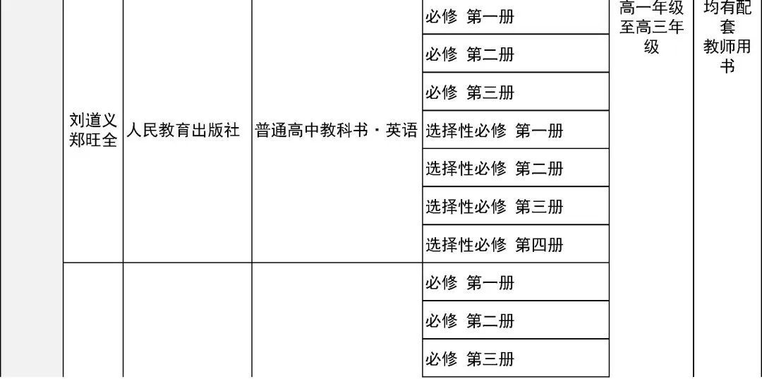 《2023年普通高中国家课程教学用书目录(根据2017年版课程标准修订)》和《2023年普通高中国家课程教学用书目录(根据2003年课程标准编写)》仍将并行。2023年秋季学期起,普通高中依据2003年课标编写的高一、高二册次教材不再列入用书目录。