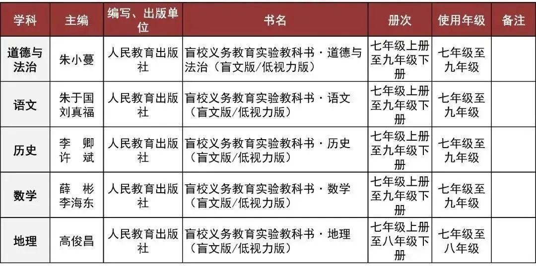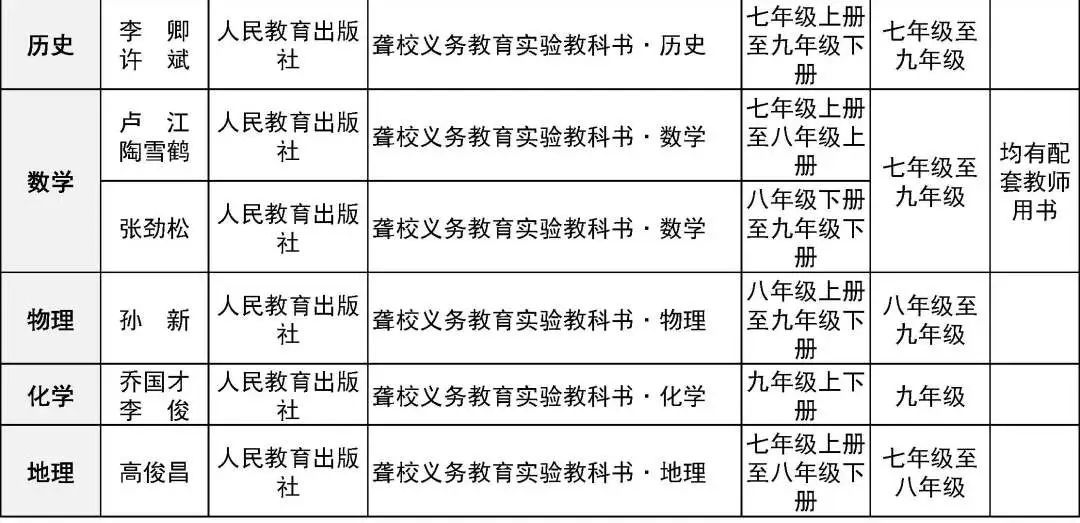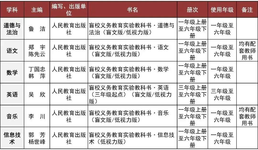 1、特殊教育学校义务教育阶段相关学科使用《2023年特殊教育学校国家课程教学用书目录》中的教材。没有新编教材的学科和年级仍使用原版本教材,或根据教学实际,选择普通学校教材中适合的内容进行教学。