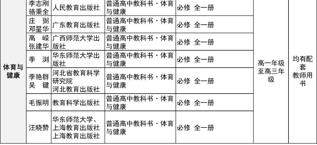 1、《2023年普通高中国家课程教学用书目录(根据2017年版课程标准修订)》和《2023年普通高中国家课程教学用书目录(根据2003年课程标准编写)》仍将并行。请各地根据新课程新教材实施方案,按照《国务院办公厅关于新时代推进普通高中育人方式改革的指导意见》(国办发〔2019〕29号)精神,统筹推进,确保实施新课程、使用新教材。2023年秋季学期起,普通高中依据2003年课标编写的高一、高二册次教材不再列入用书目录。
