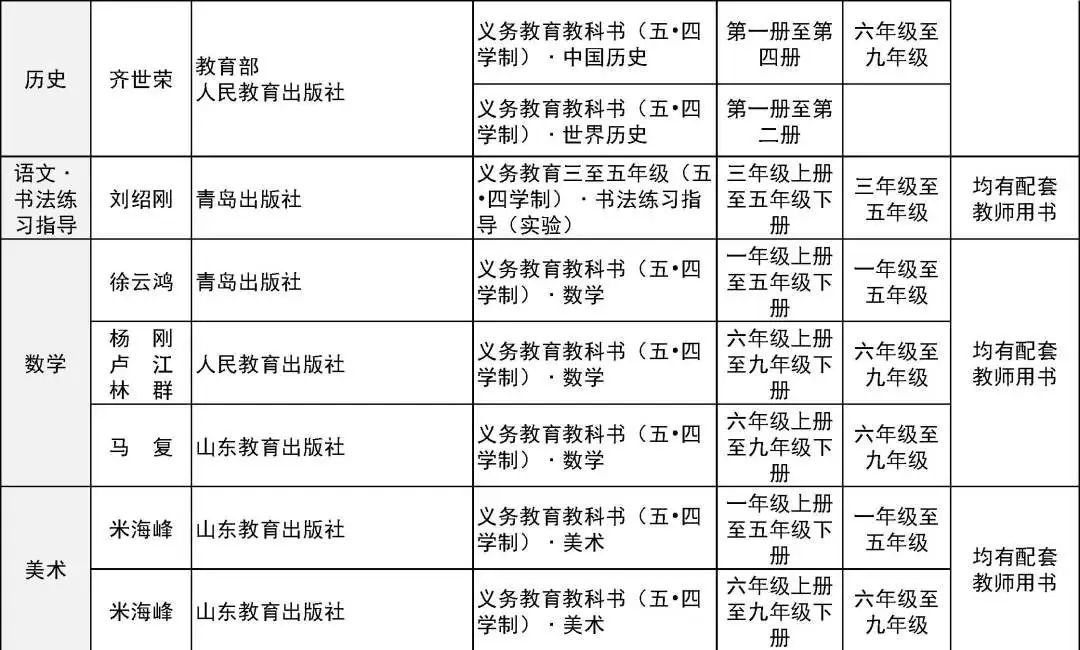 义务教育教科书(五•四学制小学一至五年级、初中六至九年级)