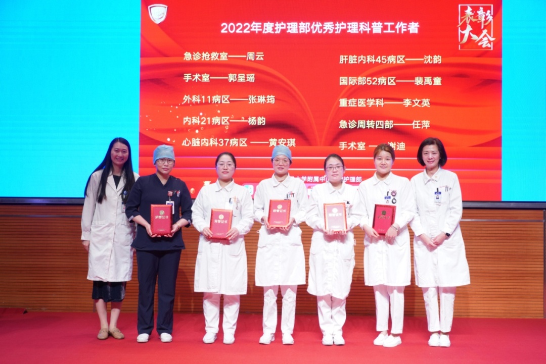 活动选拔出20名杰出护理科普工作者进行表彰,鼓励更多优秀的护士参与到科普工作中。护理部张玉侠主任、唐云龙主任、团委王媛婷书记、王春灵副主任、张育红副主任、冯丽副主任、共同为获奖者颁奖,并对大家的辛勤付出表示感谢。颁奖结束后,由国家二级导演、上海市健康促进中心科普资料开发部唐云龙主任作《聊聊短视频科普视频》专题授课,解析短视频创作要点,提高护理人员科普短视频制作的技能。
